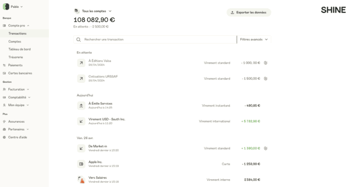1. Shine : un compte pro complet pour les auto-entrepreneurs dès 0 €/mois